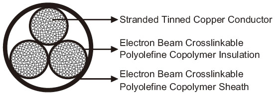 - Sheath : Electron beam crosslinkable polyolefi ne copolymer.