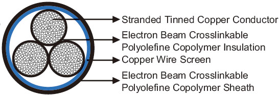 - Insulation : Electron beam crosslinkable polyolefine copolymer.