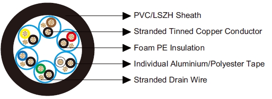 These cables have individually screened pairs laid up. Each individually screened pair has a 24AWG stranded tinned copper drain wire. These cables are suitable for RS-422 applications, used as computer cables.