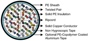 Spare Pairs (optional):Spare pairs may be incorporated for 200 and larger pair cables