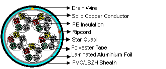 Group of four wires is stranded into a star quad, the quads are assembled into units and the units form the core