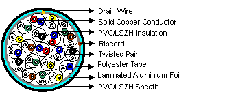 Drain wire with a diameter of 0.4mm is provided in cables up to 10 pairs. Drain wire with a diameter of 0.6mm