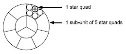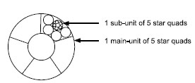 The cores of 5 star quads of a sub unit are counted according to the sequence of basic colours: