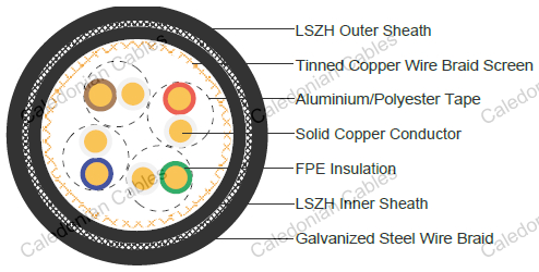 Outer Sheath : Thermoplastic LSZH compound type LTS3 as per BS 7655-6.1 (Thermosetting LSZH compound type SW2-SW4 as per BS 7655-2.6 can be offered).