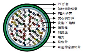 缆心外, 铠装层外包有一层聚乙烯外护套。